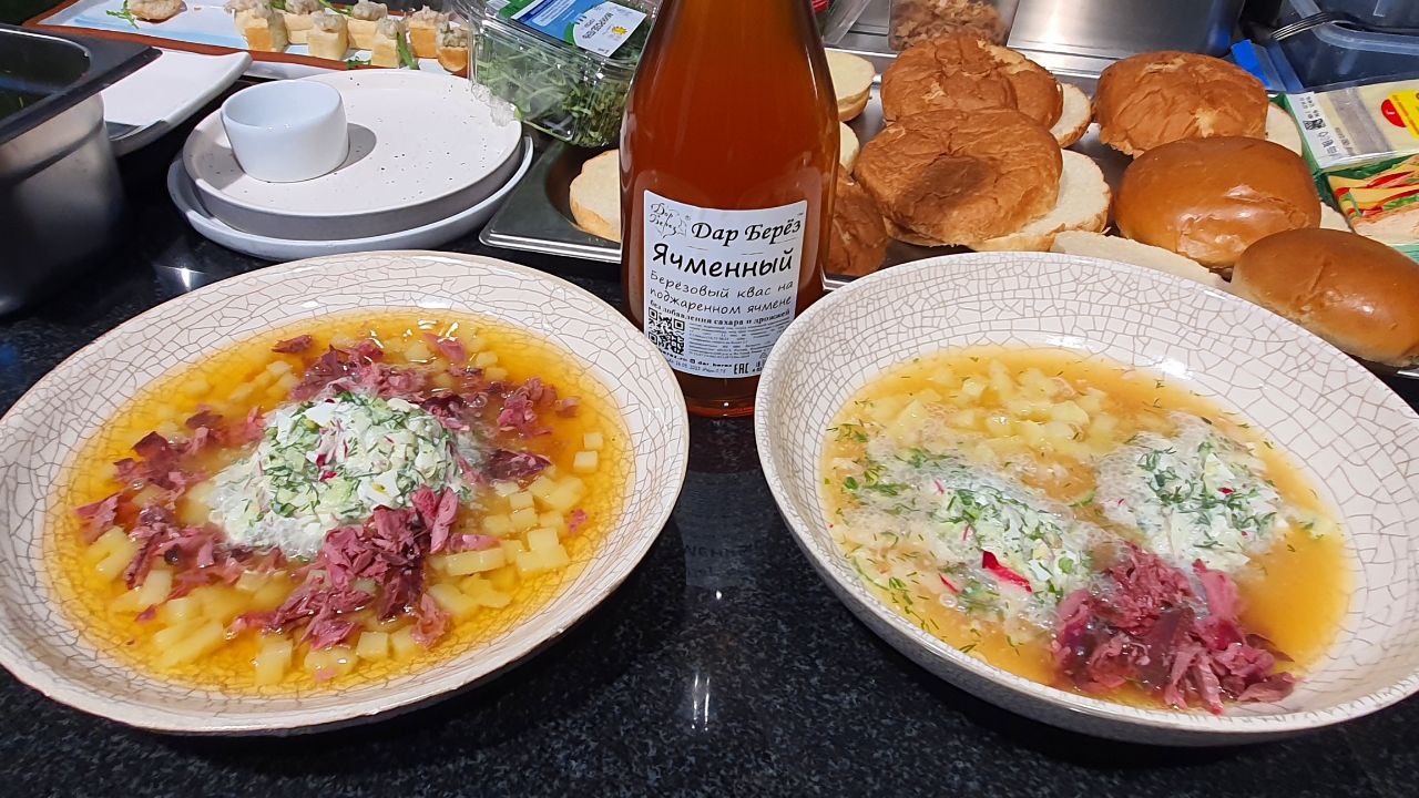 • Окрошка на березовом квасе с дичью;