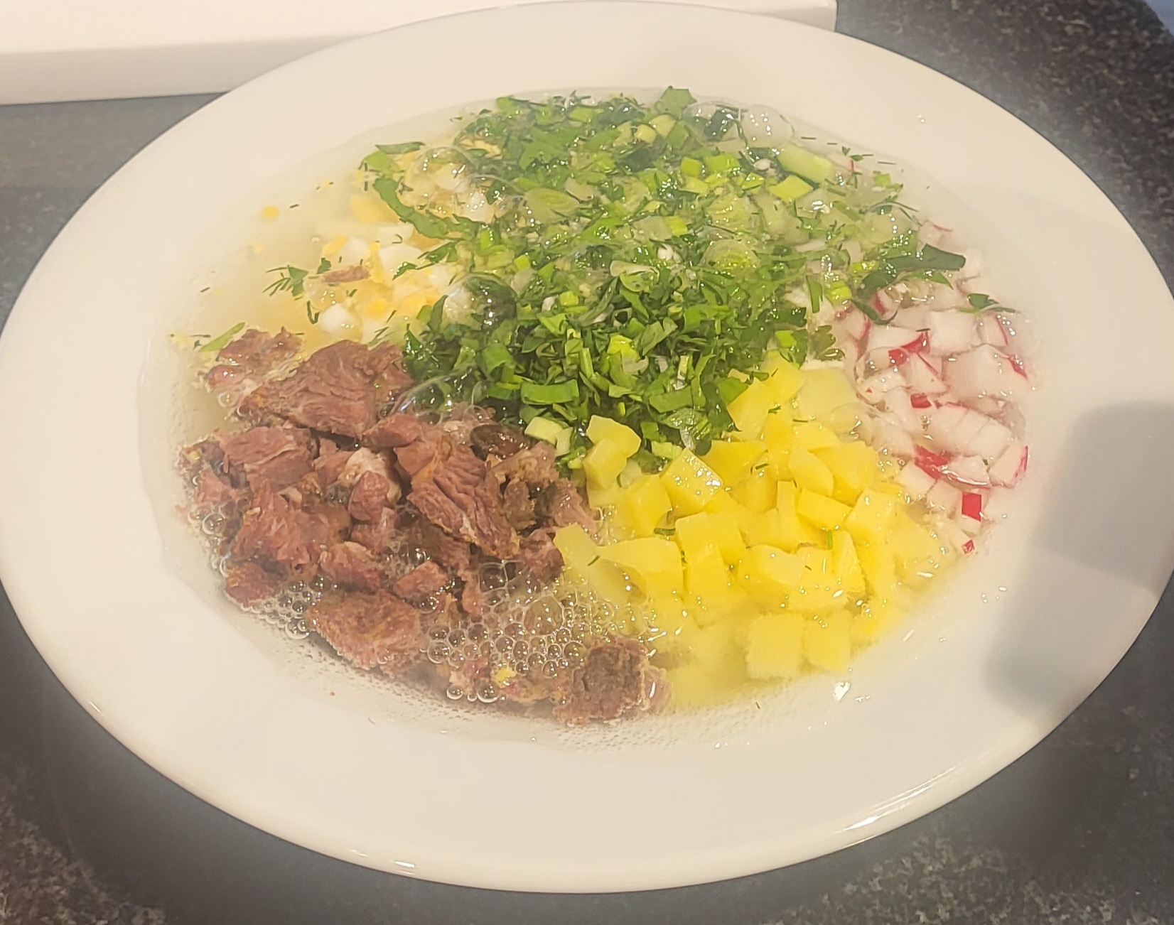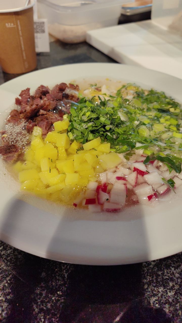 - Окрошка на белом квасе с дичью;