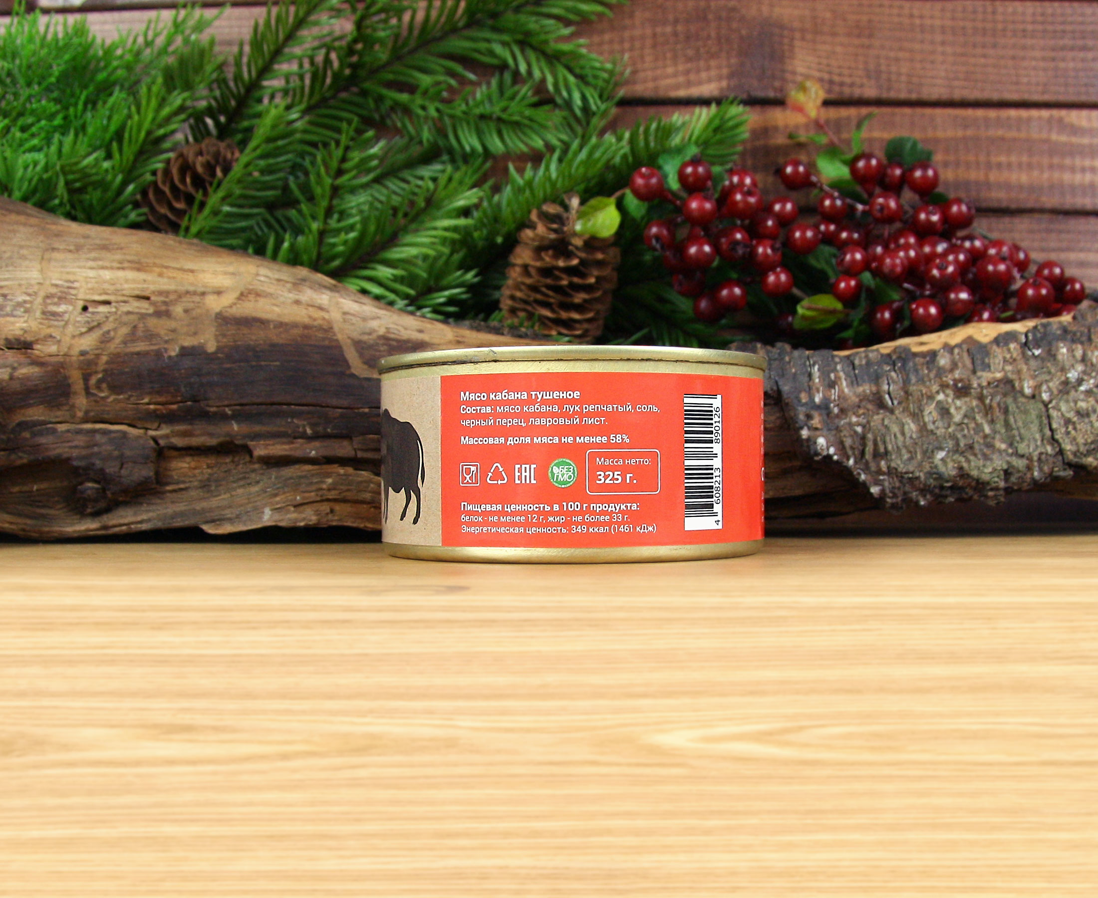 Состав: мясо кабана, лук репчатый, соль, черный перец, лавровый лист.